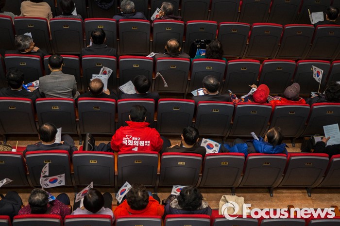 (서울=포커스뉴스) 3일 오후 서울 종로 한국기독교100주년 기념관에서 열린 기독자유당 창당대회에 한 새누리당 총선 예비후보가 자리에 앉아 있다.