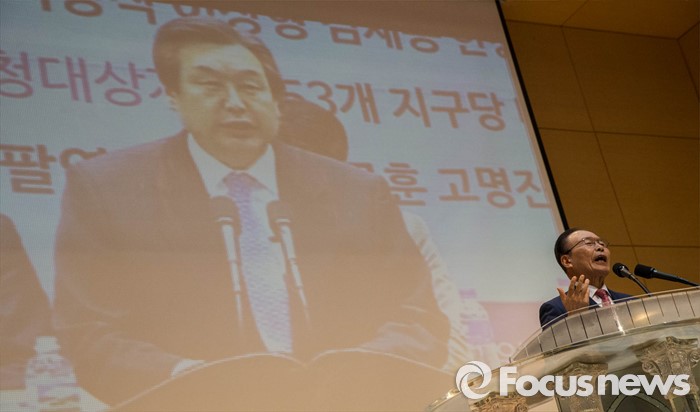 (서울=포커스뉴스) 3일 오후 서울 종로 한국기독교100주년 기념관에서 열린 기독자유당 창당대회에 참석한 한 목사가 참가자들에게 설교를 하고 있다.