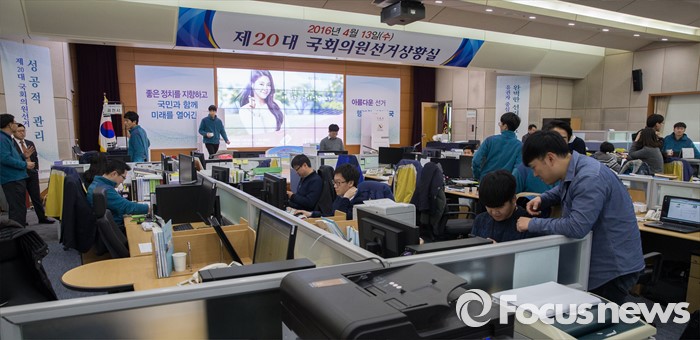 (과천=포커스뉴스) 2016 제20대 국회의원선거를 40여일 앞둔 3일 오후 경기도 과천시 중앙선거관리위원회에 마련된 선거상황실에서 직원들이 업무에 열중하고 있다.