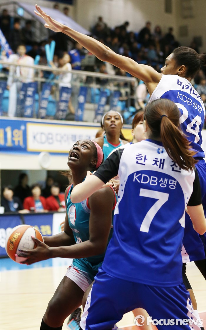 (구리=포커스뉴스) 3일 구리시체육관에서 열린 2015~2016 여자프로농구 KDB생명- KEB하나 경기에서 KDB생명 치어리더 박기량이 흥겨운 춤으로 경기장의 열기를 고조시키고 있다.