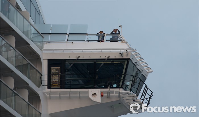 (인천=포커스뉴스) 4일 오전 인천 연수구 송도신항에 정박해 있는 아시아 최대 크루즈인 '퀀텀 오브 더 시즈'호에서 관광객들이 사진촬영을 하고 있다.