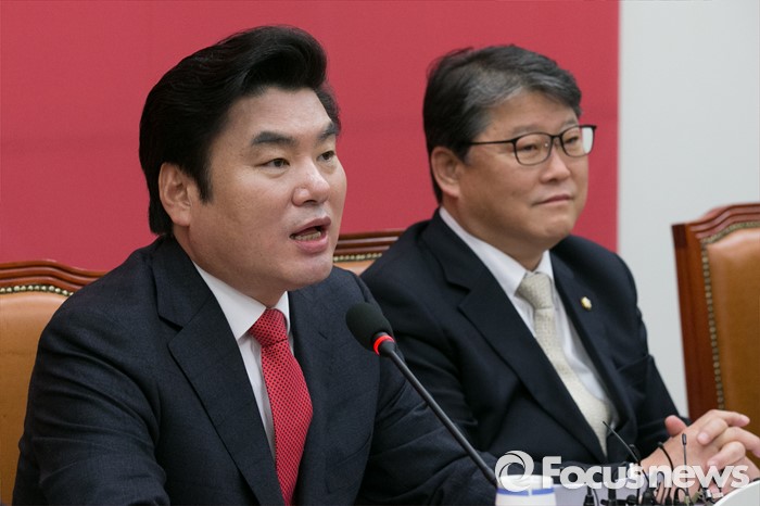 (서울=포커스뉴스) 원유철(왼쪽) 새누리당 원내대표가 4일 오전 서울 여의도 국회에서 열린 원내대책회의에 참석해 모두발언하고 있다.