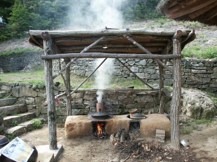☞떡차: 익힌 찻잎을 찧어서 떡처럼 만든 차떡차 제작을 위한 찌는 과정.<사진제공=문화재청>