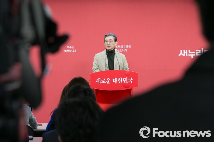 (서울=포커스뉴스) 이한구 새누리당 공천관리위원장이 4일 오전 서울 여의도 새누리 당사에서 당내 지역 예비후보 여론조사 문건 유출과 관련해 브리핑을 하고 있다.