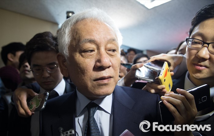 (서울=포커스뉴스) 선거대책 회의를 마친 김한길 국민의당 선대위원장이 4일 오전 서울 마포구 국민의당 당사에서 기자들의 질문을 받으며 당사를 빠져나고오 있다.