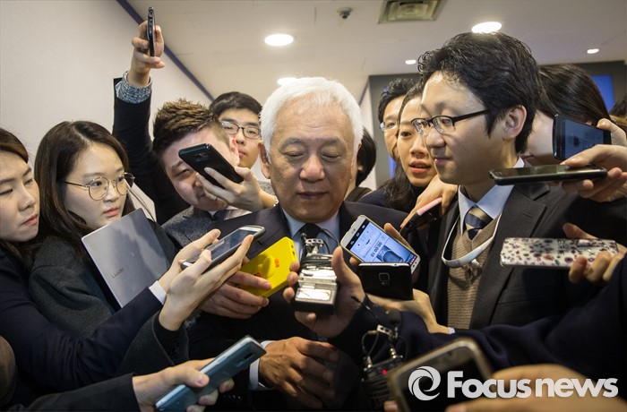 (서울=포커스뉴스) 선거대책 회의를 마친 김한길 국민의당 선대위원장이 4일 오전 서울 마포구 국민의당 당사에서 기자들의 질문을 받으며 당사를 빠져나고오 있다.