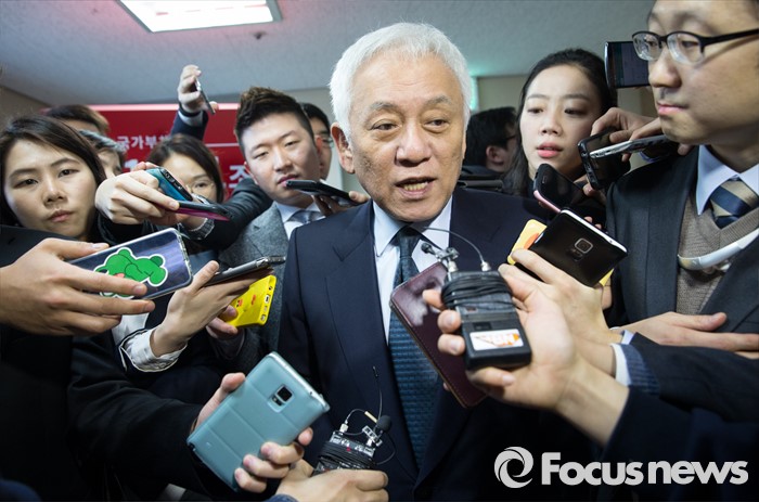 (서울=포커스뉴스) 선거대책 회의를 마친 김한길 국민의당 선대위원장이 4일 오전 서울 마포구 국민의당 당사에서 기자들의 질문을 받으며 당사를 빠져나고오 있다.