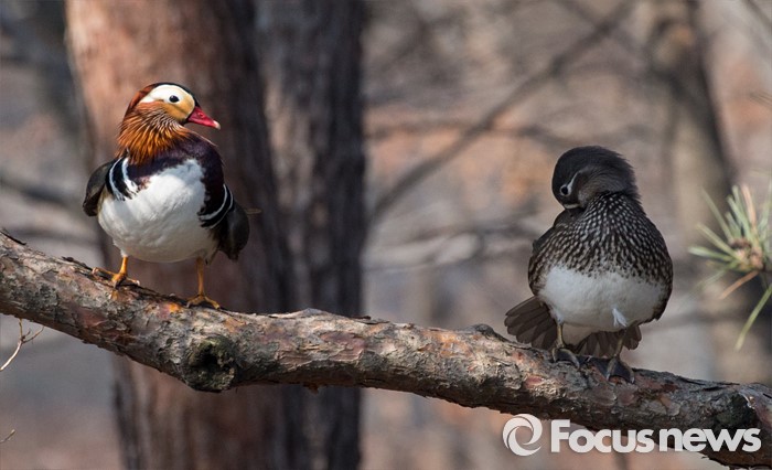 (서울=포커스뉴스) 동면하던 동물이 땅속에서 깨어난다는 경칩을 하루 앞둔 4일 오전 서울 종로구 창경궁 춘당지에서 원앙들이따스한 봄볕을 쐬고 있다.