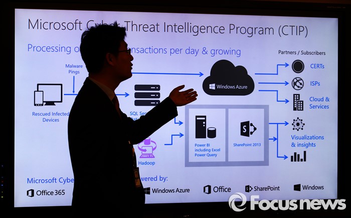 (서울=포커스뉴스) 한국마이크로소프트 사이버보안센터 오픈식이 열린 4일 오전 서울 종로구 더케이트원타워에서 관계자가 사이버센터에 대한 설명을 하고 있다.