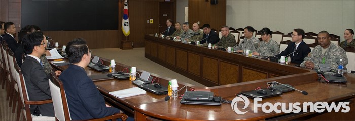 (서울=포커스뉴스) 4일 오후 서울 용산구 국방부에서 열린 주한미군의 사드 배치문제를 협의하기 위한 한·미 공동실무단 첫 회의에 한국측 대표인 장경수 국방부 정책기획관과 미국측 대표인 헤드룬드 주한미군사령부 기획참모부장이 참석하고 있다.