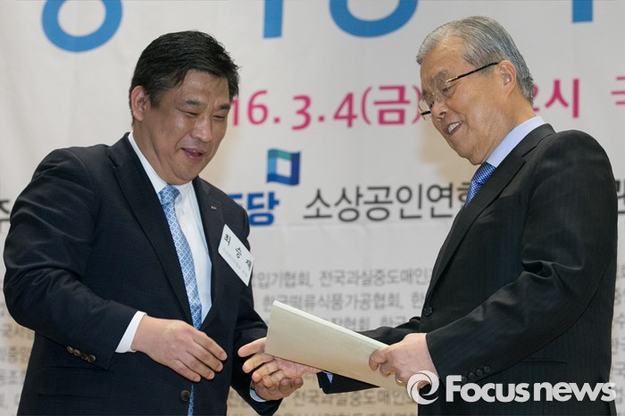| △ 소상공인 정책공약 받은 김종인 |