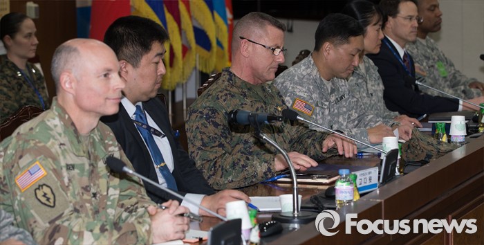 (서울=포커스뉴스) 4일 오후 서울 용산구 국방부에서 열린 주한미군의 사드 배치문제를 협의하기 위한 한·미 공동실무단 첫 회의에 미국측 대표인 헤드룬드(왼쪽 세번째) 주한미군사령부 기획참모부장이 참석하고 있다.