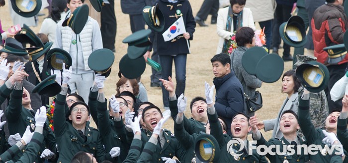 (계룡=포커스뉴스) 4일 오후 충남 계룡대 연병장에서 열린 2016년 장교 합동임관식에서 신임장교들이 정모를 하늘높이 던지고 있다.