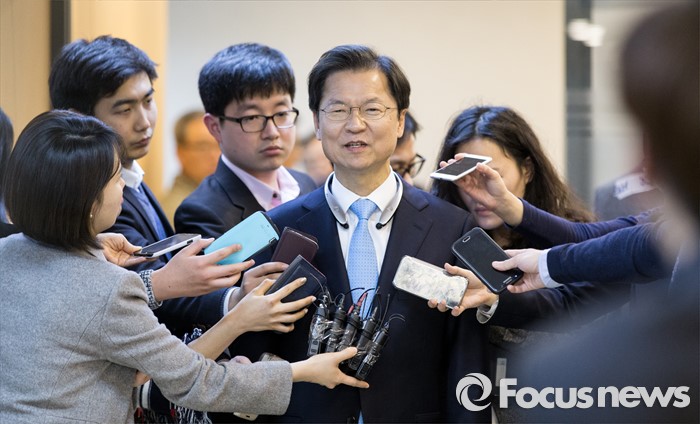 (서울=포커스뉴스) 천정배 국민의당 공동대표가 4일 오후 서울 마포구 국민의당 당사에서 야권 통합 여부를 결정하기 위한 의원총회에 참석하기 위해 회의실로 들어서며 취재진 질문에 답하고 있다.