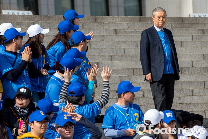 (서울=포커스뉴스) 김종인 더불어민주당 비상대책위원회 대표가 6일 오후 서울 영등포구 국회 본관 앞에서 열린 '더불어민주당 총선 응원가 뮤직비디오 촬영'에 참여하기 위해 촬영장으로 이동하자 당원들이 손을 흔들며 환호 하고 있다.