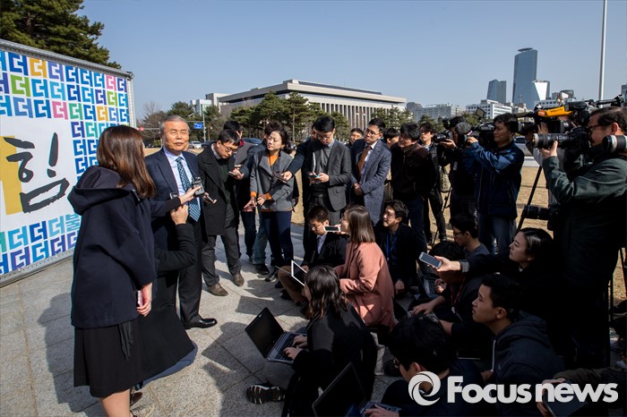 | △ 취재진과 인터뷰하는 김종인 대표 |