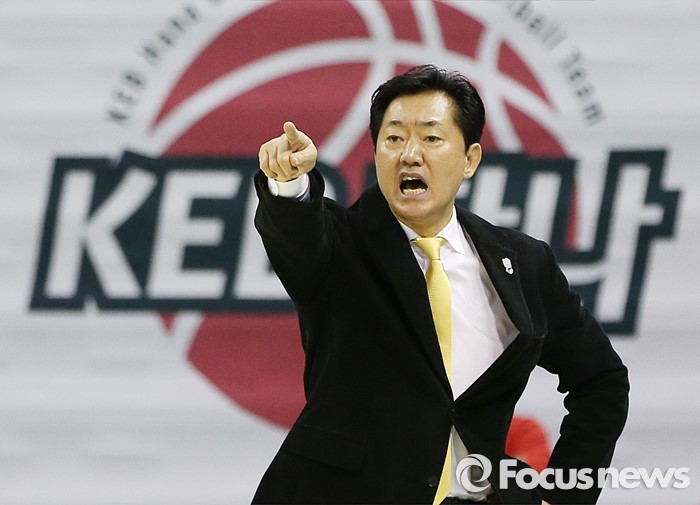 (부천=포커스뉴스) 6일 부천체육관에서 열린 2015-2016 여자프로농구 KEB하나은행-KB스타즈 경기에서 KEB하나 바종천 감독이 경기중 선수들을 강하게 독려하고 있다.