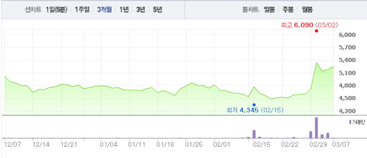 한편, 미래창조과학부는 2월 말 한국 최초의 우주 탐사 프로젝트인 달 탐사 사업에 올해부터 3년간 1970억원을 투입하는 계획을 발표했다.비츠로테크 주가흐름<사진출처=네이버 캡쳐>