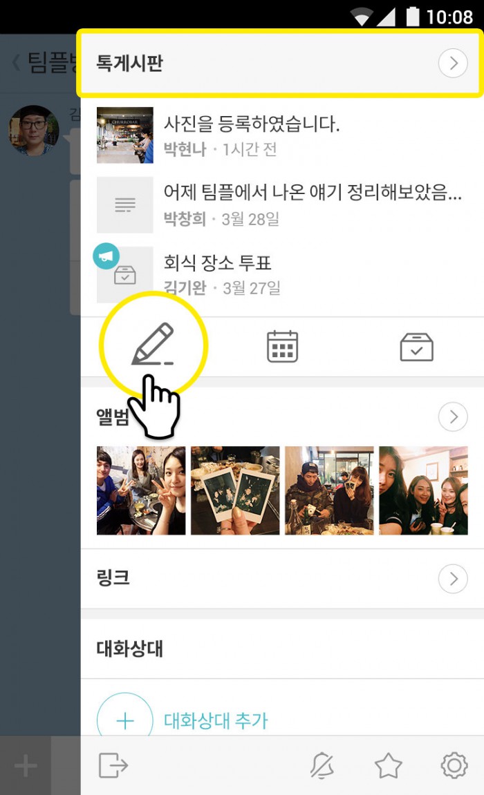 (서울=포커스뉴스) 카카오(대표 임지훈)가 카카오톡 채팅방에 사진, 동영상, 파일 첨부가 가능한 게시판 등 모임 관리에 필요한 도구들을 7일 추가했다. 카카오는 이를 통해 카카오톡의 모임 관리 기능을 강화하고, 대화의 지속성과 편리성을 한층 더 높인다는 방침이다.