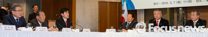 (서울=포커스뉴스) 7일 서울 중구 롯데호텔앤리조트 서울에서 열린 '대한체육회(통합체육회) 발기인 대회'에서 이동현(맨 왼쪽) 통합준비위원회 위원이 발언을 하고 있다.