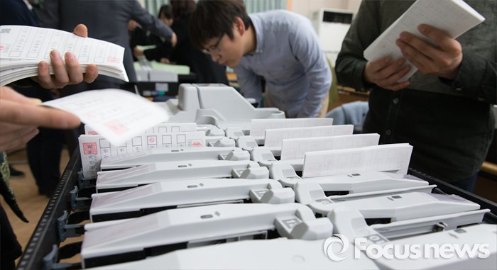 (서울=포커스뉴스) 제20대 총선을 한 달여 앞둔 7일 오후 서울 종로구 중앙선거관리위원회 선거연수원에서 투표지 분류기 담당자들이 장비점검 및 개표관리 실습교육을 하고 있다.
