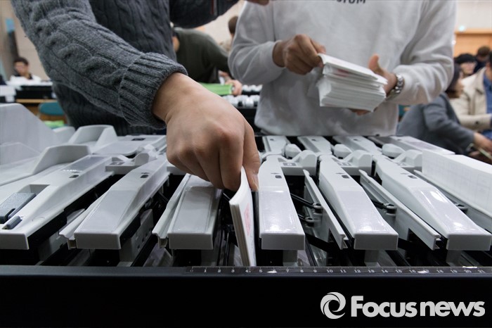 (서울=포커스뉴스) 제20대 총선을 한 달여 앞둔 7일 오후 서울 종로구 중앙선거관리위원회 선거연수원에서 투표지 분류기 담당자들이 장비점검 및 개표관리 실습교육을 하고 있다.