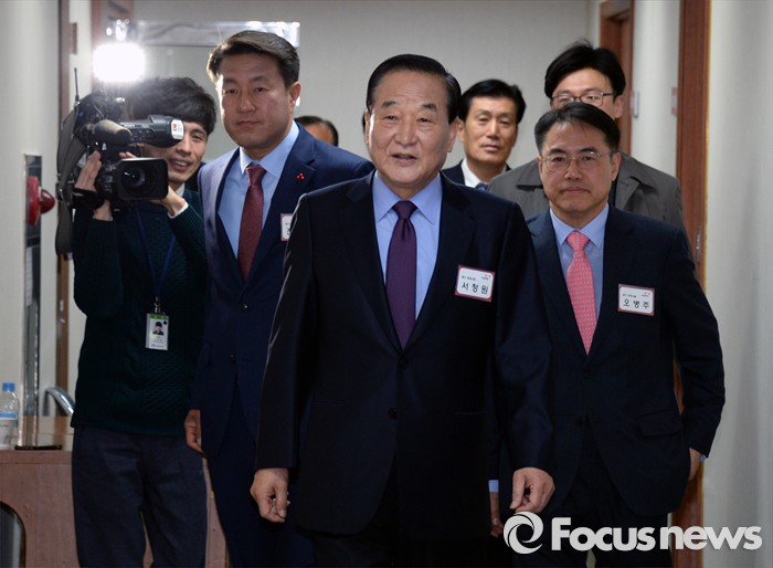 (서울=포커스뉴스) 경기 화성갑에 출마 선언한 새누리당 서청원 최고위원이 7일 오후 서울 여의도 당사에서 열린 20대 총선 선거구 획정과정에 분구·통합된 경기·충청·강원지역의 공천신청자면접에 참석하고 있다.