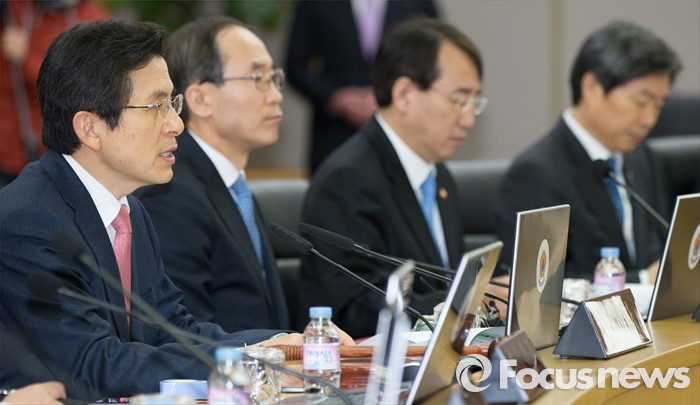 (세종=포커스뉴스) 황교안 국무총리가 8일 오전 세종시 정부세종청사 국무회의장에서 서울-세종 영상회의로 열린 국무회의에 참석해 모두발언을 하고 있다.
