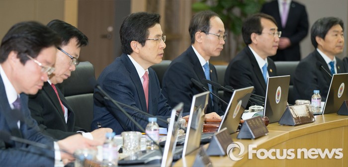 (세종=포커스뉴스) 황교안 국무총리가 8일 오전 세종시 정부세종청사 국무회의장에서 서울-세종 영상회의로 열린 국무회의에 참석해 모두발언을 하고 있다.