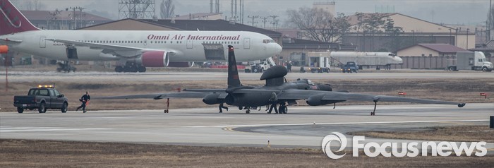 (평택=포커스뉴스) 역대 최대 규모의 한·미연합훈련(키리졸브연습·독수리훈련·쌍용훈련)이 실시되고 있는 8일 오전 경기도 평택시 주한미군 오산공군기지에서 U-2S 고고도정찰기가 이륙 준비를 하고 있다.