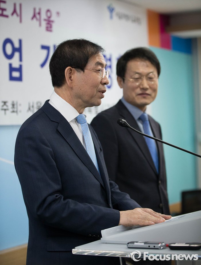 (서울=포커스뉴스) 박원순 서울시장이 8일 오전 종로구 서울시 교육청에서 열린 '서울시-교육청 교육협력사업 기자회견' 참석해 인사말을 하고 있다.
