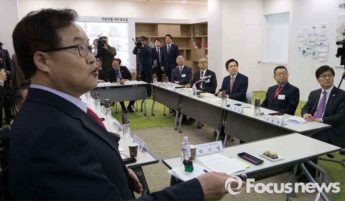 (청주=포커스뉴스) 황교안 국무총리가 8일 오후 충북 청주시 청원구 오창읍 충북창조경제혁신센터를 방문, 윤준원 충북창조경제혁신센터 센터장으로부터 센터 설명을 청취하고 있다.