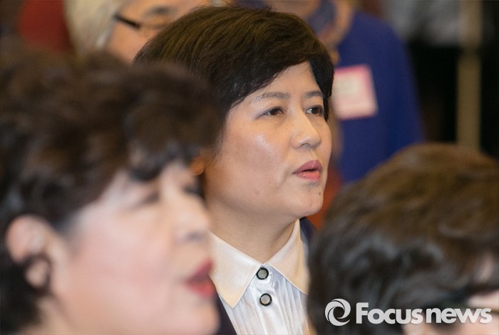 (서울=포커스뉴스) 8일 오후 서울 여의도 국회 헌정기념관에서 열린 세계 여성의 날 기념대회에 참석한 강은희 여성가족부 장관이 애국가를 부르고 있다.