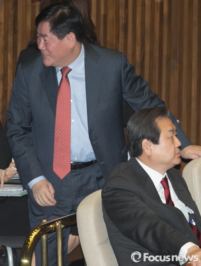 (서울=포커스뉴스) '비박계 수장' 김무성 새누리당 대표와 '진박감별사' 최경환 전 경제부총리가 8일 '어색한 만남'을 가졌다. 이들은 50분가량 같은 자리에 있었지만 가벼운 인사를 제외하곤 별다른 대화를 나누지 않았다.