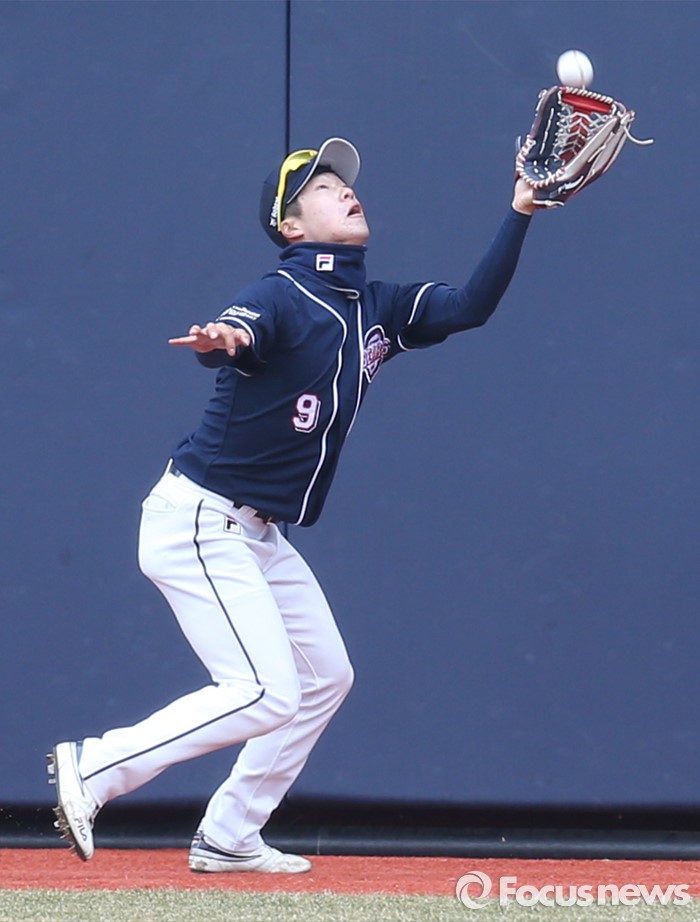 (수원=포커스뉴스) 8일 수원 kt위즈파크에서 열린 2016 KBO리그 시범경기 두산-kt 경기에서 8회 두산 중견수 조수행이 kt 김연훈의 타구를 가운데 펜스 앞에서 잡고 있다.