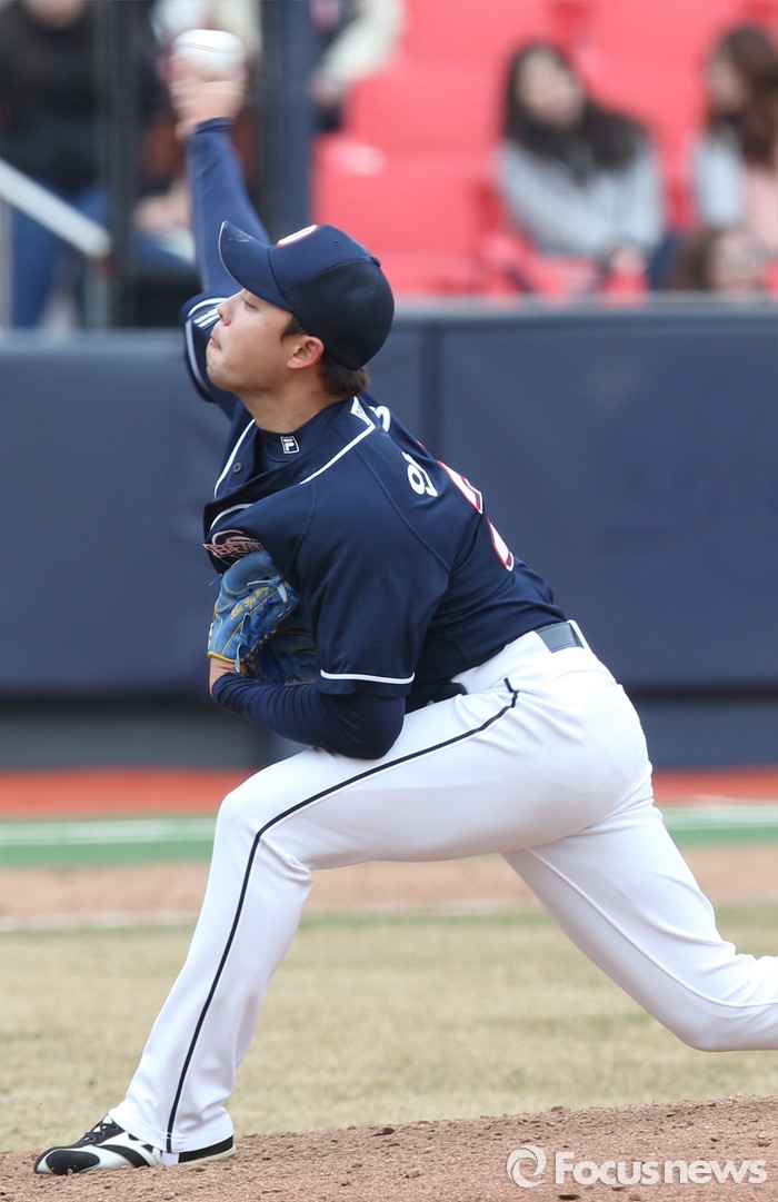 (수원=포커스뉴스) 8일 수원 kt위즈파크에서 열린 2016 KBO리그 시범경기 두산-kt 경기에서 두산 투수 안규영이 투구하고 있다.