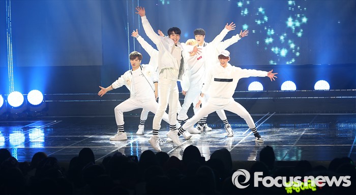 (서울=포커스뉴스) 8일 오후 서울 마포구 SBS프리즘 타워에서 '2016 더쇼 62회' 생방송 촬영 현장에서 아이돌 그룹 아스트로가 '숨바꼭질'의 무대를 선보이고 있다.