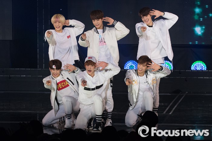 (서울=포커스뉴스) 8일 오후 서울 마포구 SBS프리즘 타워에서 열린 '2016 더쇼 62회' 생방송 촬영 현장에 아이돌 그룹 아스트로가 '숨바꼭질'의 무대를 선보이고 있다.