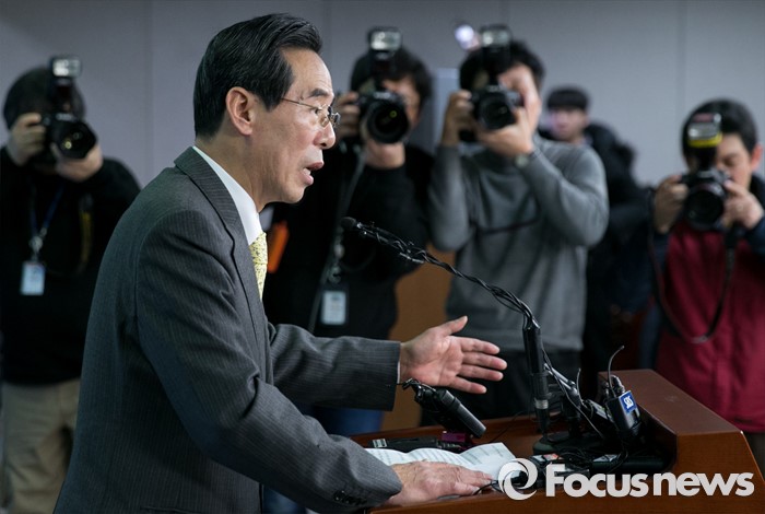 (서울=포커스뉴스) 홍창선 더불어민주당 공천관리위원장이 9일 오전 서울 여의도 국회 정론관에서 20대 총선 1차 경선지역과 관련 브리핑을 하고 있다. 홍 위원장은 이날 브리핑 중 취재관행을 바꾸기 위한 언론인과 대화를 하던 중 일부 항의를 받았다.