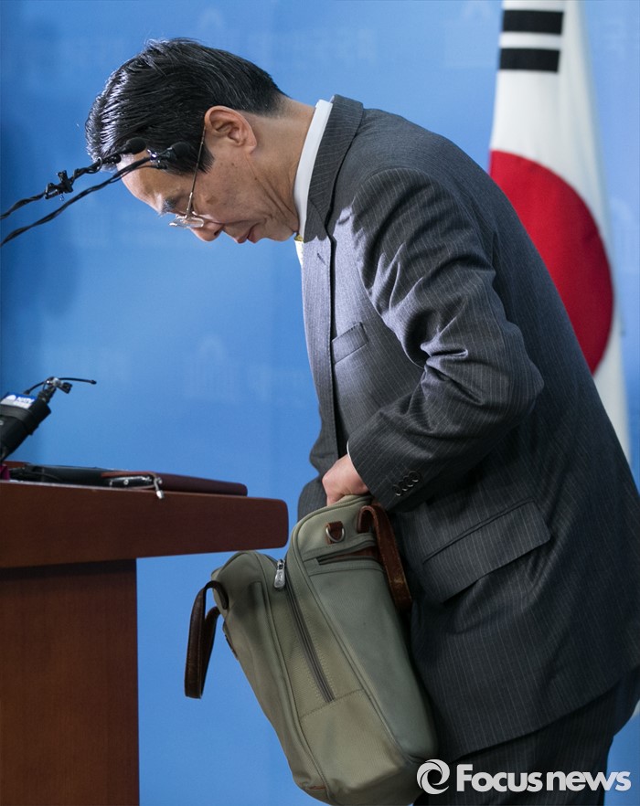 (서울=포커스뉴스) 홍창선 더불어민주당 공천관리위원장이 9일 오전 서울 여의도 국회 정론관에서 20대 총선 1차 경선지역과 관련 브리핑 중 가방에서 자료를 꺼내고 있다. 홍 위원장은 이날 브리핑 중 취재관행을 바꾸기 위한 언론인과 대화를 하던 중 일부 항의를 받았다.