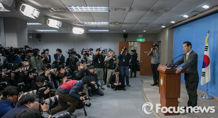 (서울=포커스뉴스) 홍창선 더불어민주당 공천관리위원장이 9일 오전 서울 여의도 국회 정론관에서 20대 총선 1차 경선지역과 관련 브리핑을 하고 있다. 홍 위원장은 이날 브리핑 중 취재관행을 바꾸기 위한 언론인과 대화를 하던 중 일부 항의를 받았다.