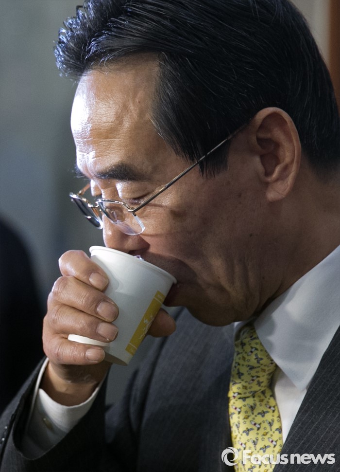 | △ 목 축이는 홍창선 공천관리위원장 |