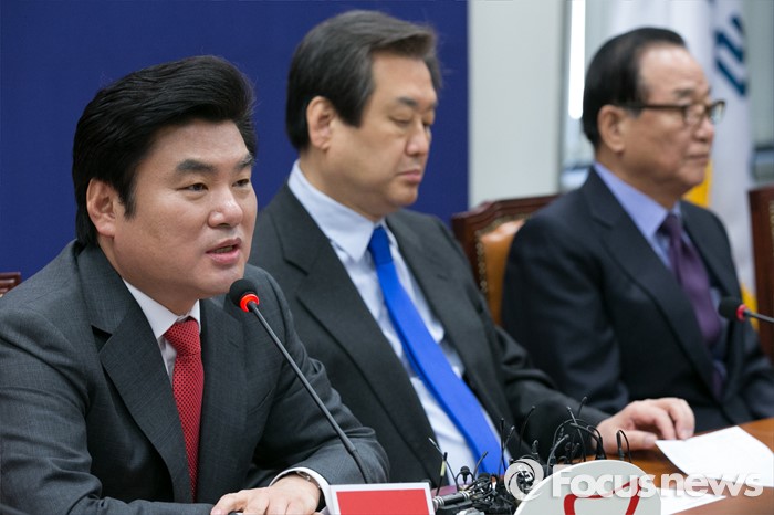 (서울=포커스뉴스) 원유철(왼쪽) 새누리당 원내대표가 9일 오전 서울 여의도 국회에서 열린 최고중진연석회의에 참석해 모두발언하고 있다.