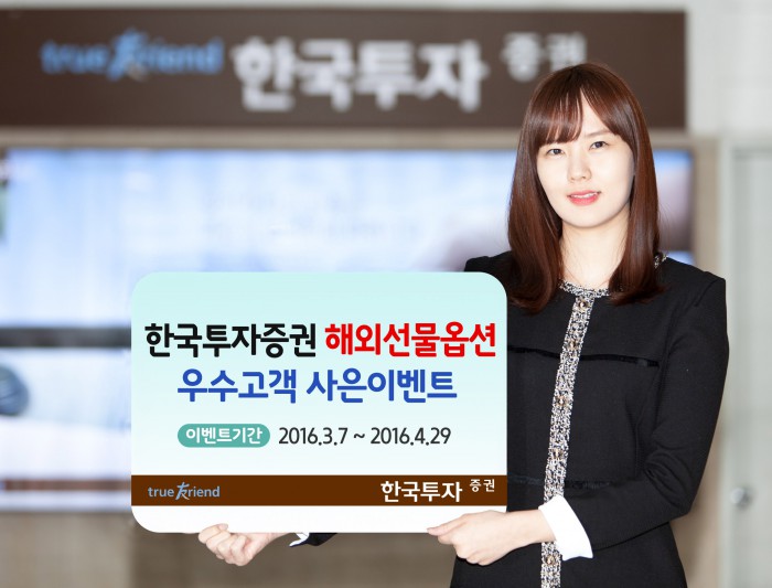 (서울=포커스뉴스) 한국투자증권이 다음달 29일까지 해외선물옵션 거래 고객을 대상으로 사은 이벤트를 진행한다고 9일 밝혔다.
