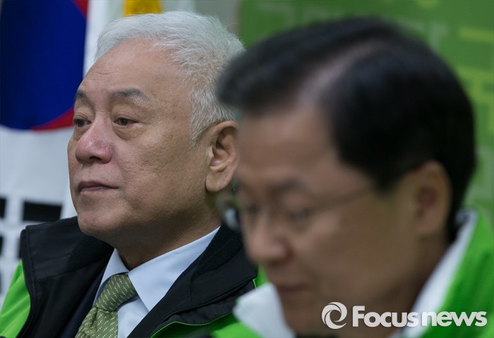 (서울=포커스뉴스) 9일 오전 서울 마포구 국민의당 당사에서 열린 최고위원회의에서 김한길 상임공동선대위원장이 생각에 잠겨 있다.