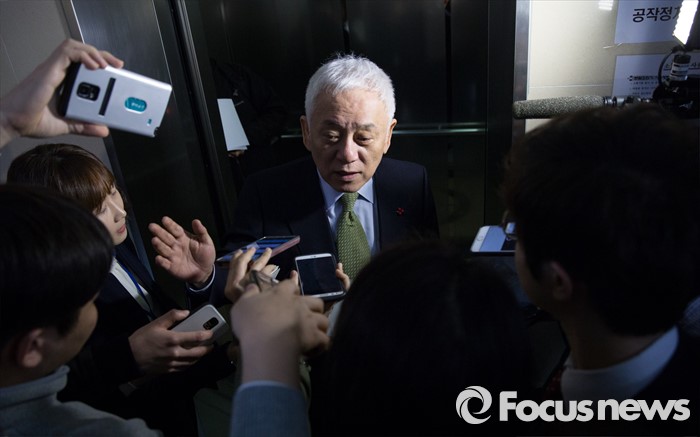 (서울=포커스뉴스) 9일 오전 서울 마포구 국민의당 당사에서 선거대책회의를 마친 김한길 상임공동 선거대책위원장이 기자들에게 야권통합, 야권연대에 관한 질문을 받고 있다.