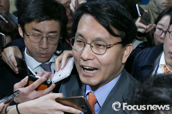 (서울=포커스뉴스) 김무성 새누리당 대표를 향한 욕설로 당내 파문을 일으킨 윤상현 의원이 9일 오전 서울 여의도 새누리당 대표최고위원실 앞 로비에서 기자들의 질문에 답변하고 있다. 전날 윤 의원은 전화를 통해 김 대표를 거론하며 욕설한 사실이 언론에 공개됐으며, 이날 김 대표에게 면담을 요청했으나 거절됐다.