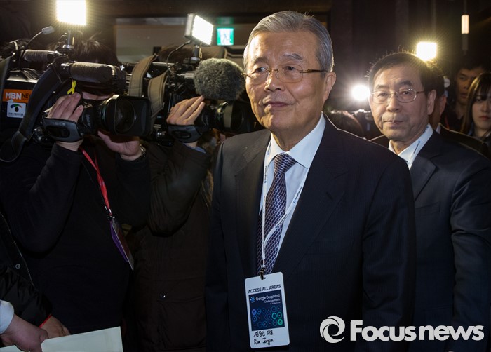 (서울=포커스뉴스) 9일 오후 서울 종로구 포시즌스 호텔에서 열린 이세돌 9단과 알파고의 '구글 딥마인드 챌린지 매치'에 참석한 김종인(가운데) 더불어민주당 비상대책위원회 대표와 박원순 서울시장이 대기실로 향하고 있다.