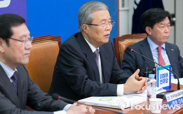 (서울=포커스뉴스) 김종인 더불어민주당 비대위 대표가 9일 오후 서울 여의도 국회에서 열린 중소기업중앙회 회장단 총선과제 전달식에 참석해 인사말을 하고 있다. 왼쪽부터 이용섭 총선정책공약단장, 김 대표, 박성택 중소기업중앙회장.