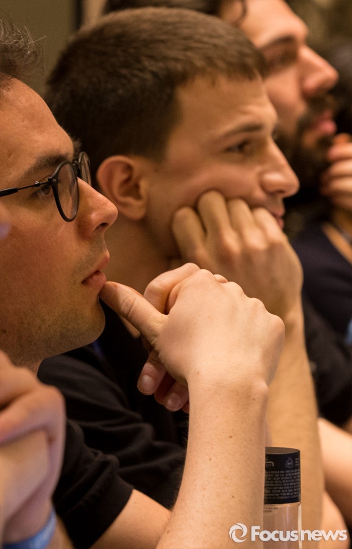 (서울=포커스뉴스) 9일 오후 서울 종로구 포시즌스 호텔에서 열린 이세돌 9단과 알파고의 '구글 딥마인드 챌린지 매치'에 참석한 구글 알파고 팀원들이 대국을 관전하고 있다.